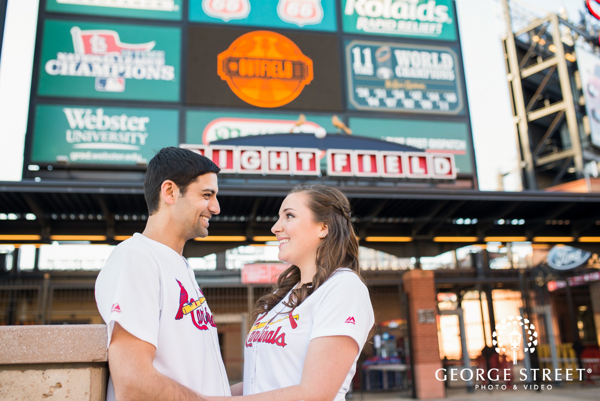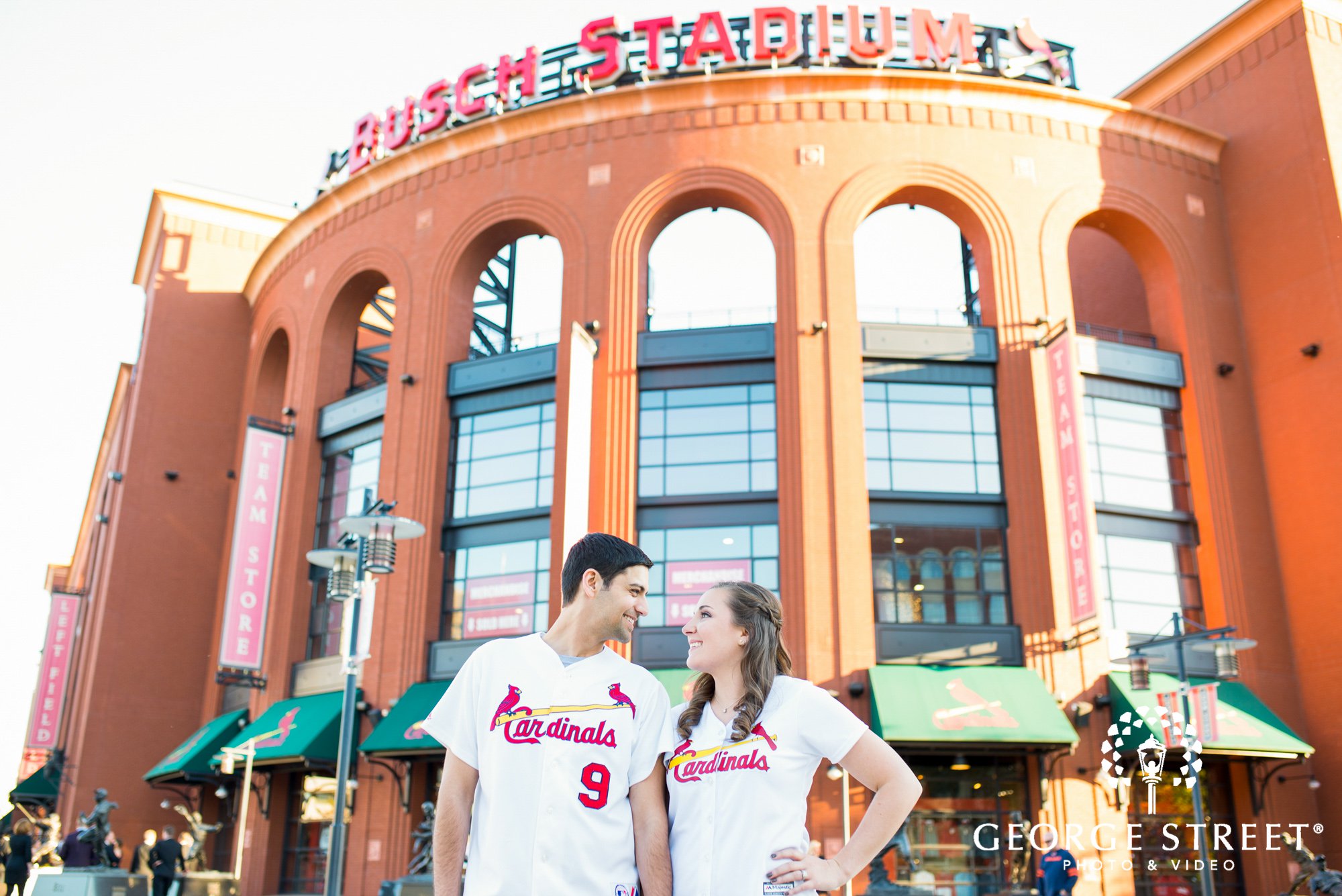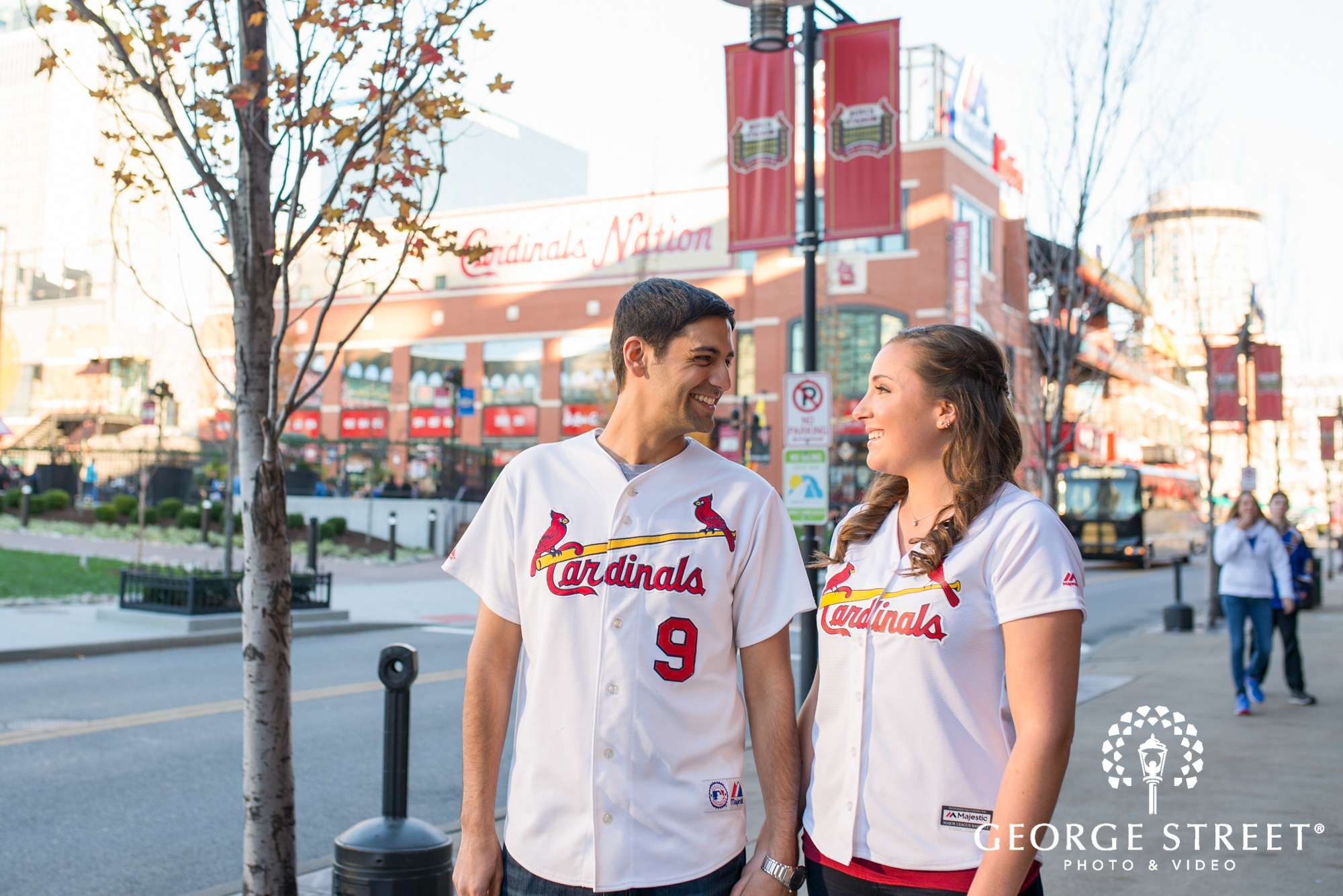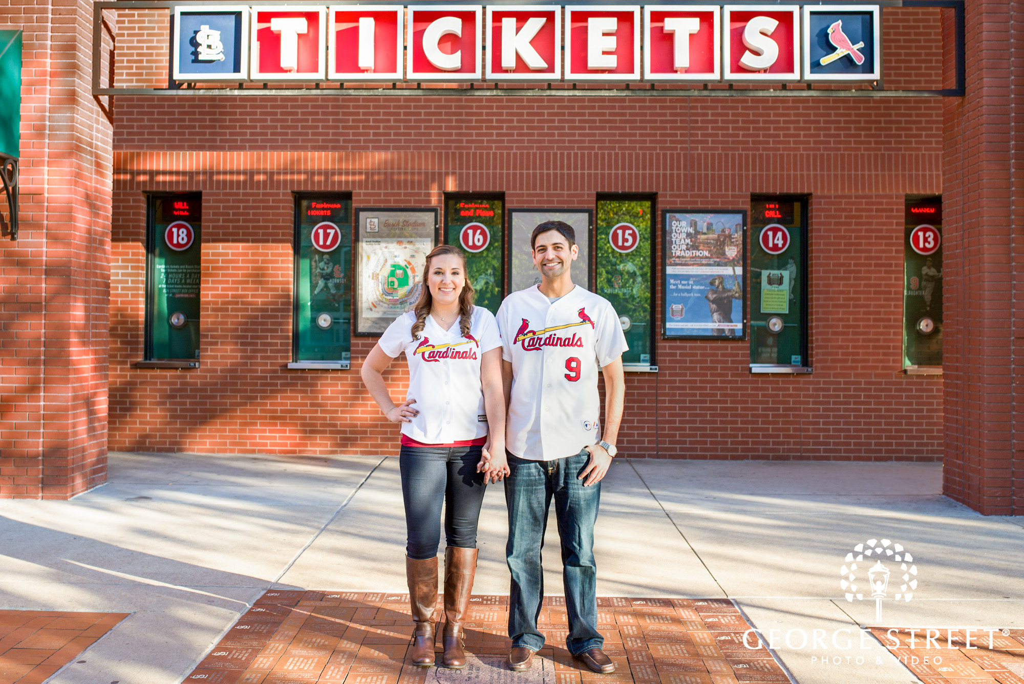 Busch Stadium and Ballpark Village are located in the heart of downtown St. Louis. It's a great place for Cardinal lovers -- and people who just love the city -- to score some stellar photos. Ballpark Village, which has been recently revamped, with a classic look. You'll find a plethora of red brick buildings and iron accents to bring that vintage urban flair to your photos. Busch Stadium is equally lovely in its construction. Its red brick exterior provides ample opportunity for photo ops. If you want to bring the Cardinals in on the fun, try posing under the ticket sign or the entrance. For added Cardinals pride, you can rock matching jerseys.