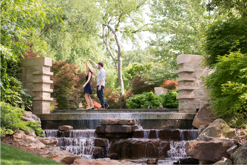 Kindred Oaks As golden hour gives way to dusk, it is the perfect time to capture some beautiful engagement photographs at Kindred Oaks. The limestone and cedar reception pavilion with a 2,300-square-foot deck looks enticing with the ceiling fans and luminous sconces. Likewise, two waterfalls flank a gorgeous cedar and stone gazebo, that make a gorgeous focal point for the Kindred Oaks engagement photo session. It is amazing to see the city lights twinkling in the distance while you enjoy a tranquil stroll with your brand-new fiance (or fiancee). A few architectural elements that come in between give an artistic touch to your Austin engagement photos.